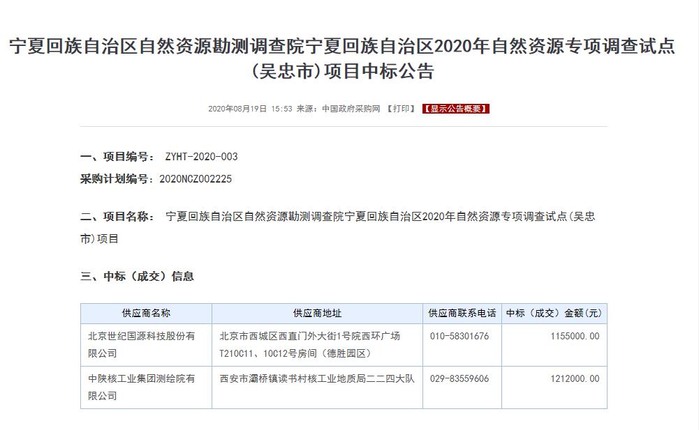 喜訊!中陜核測繪院中標寧夏回族自治區(qū)2020年自然資源專項調查試點項目