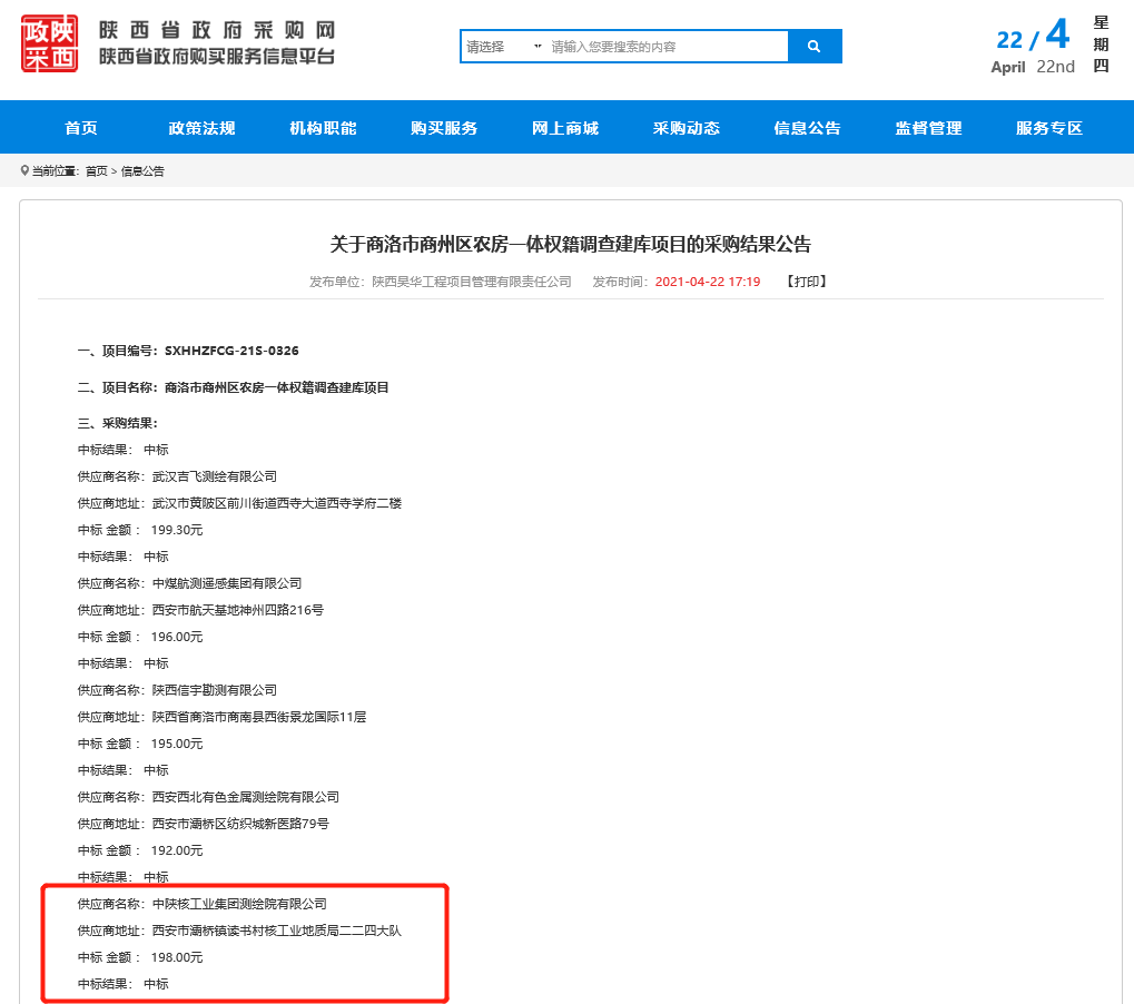 五一國際勞動節(jié)來臨之際,在公司領(lǐng)導(dǎo)班子支持下,在經(jīng)營發(fā)展部和新疆分公司同仁的努力下,再次傳來中標(biāo)喜訊。中陜核測繪院憑借突出的業(yè)績、雄厚的技術(shù)實力以及良好的市場信譽(yù)脫穎而出,成功中標(biāo)“商洛市商州區(qū)房地一體權(quán)籍調(diào)查建庫項目第七標(biāo)段”。
