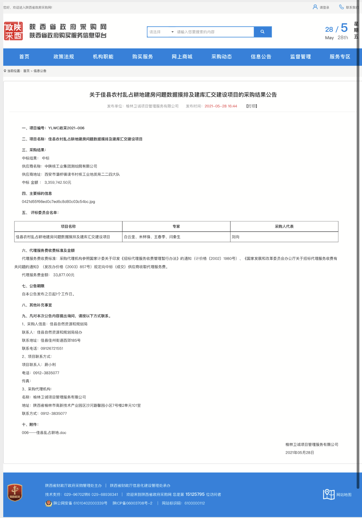 2021年5月28日從陜西省公共交資源交易網(wǎng)獲悉,中陜核測繪院成功中標(biāo)佳縣農(nóng)村亂占耕地房屋問題數(shù)據(jù)摸排及建庫匯交建設(shè)項(xiàng)目,中標(biāo)金額為335.97萬元。