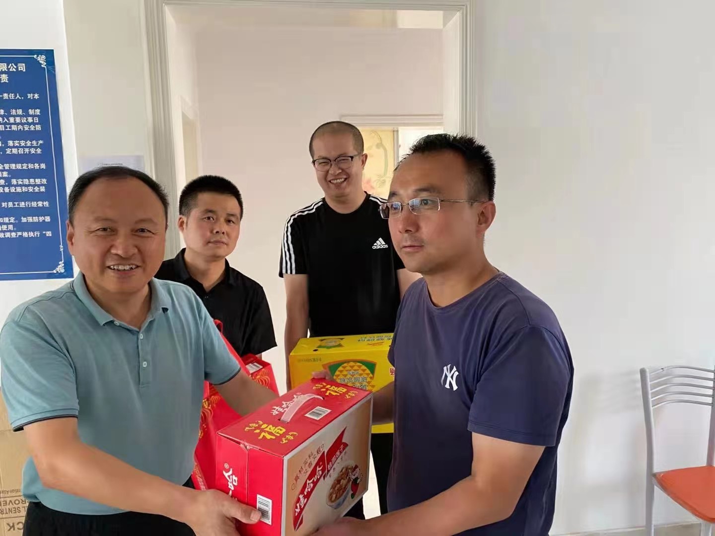 他們?yōu)檠籽琢胰障乱琅f奮斗在新疆一線的職工“送清涼”,給大家?guī)砹税藢氈唷⑼趵霞獩霾璧认钗繂柶贰?/span>