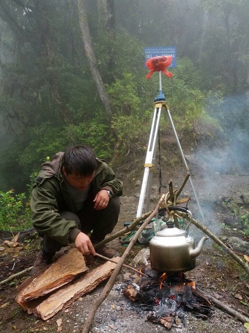 職工們的工作、生活條件非常艱苦,測區(qū)沒有道路,就用柴刀開路。測區(qū)小溪、河流密布,就用竹子、木頭搭建浮橋。沒有房子住,就自己搭帳篷。沒有食堂和理發(fā)店,就自己做飯、剪頭發(fā)。每天下午收工回到營地,大家就用僅有的一臺發(fā)電機發(fā)電幾小時,并在這有限的時間里整理數(shù)據(jù)、給測量儀器充電。測區(qū)屬于原始森林無人區(qū),有著孟加拉虎、金錢豹、熊等大型猛獸,當(dāng)林中野獸嘶鳴,安全受到威脅時,職工們帶刀出工,相互充當(dāng)著護衛(wèi)。測區(qū)施工難度大,地形變化復(fù)雜,職工們攻堅克難,磨禿了鞋底,刮花了衣服,手掌磨起了一個又一個老繭。西藏的冬天自然環(huán)境惡略、殘酷,職工們要時刻面臨高寒、缺氧、暴風(fēng)雪的威脅,他們沒有叫苦叫累,也沒有發(fā)出怨言,而是不畏艱難險阻,克服重重困,冒著風(fēng)雪、嚴寒征服了一座又一座高山。