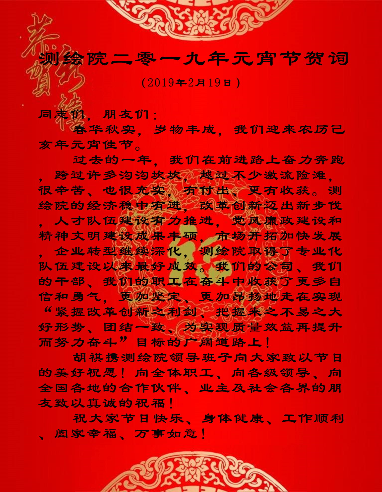 測繪院二零一九年元宵節(jié)賀詞
